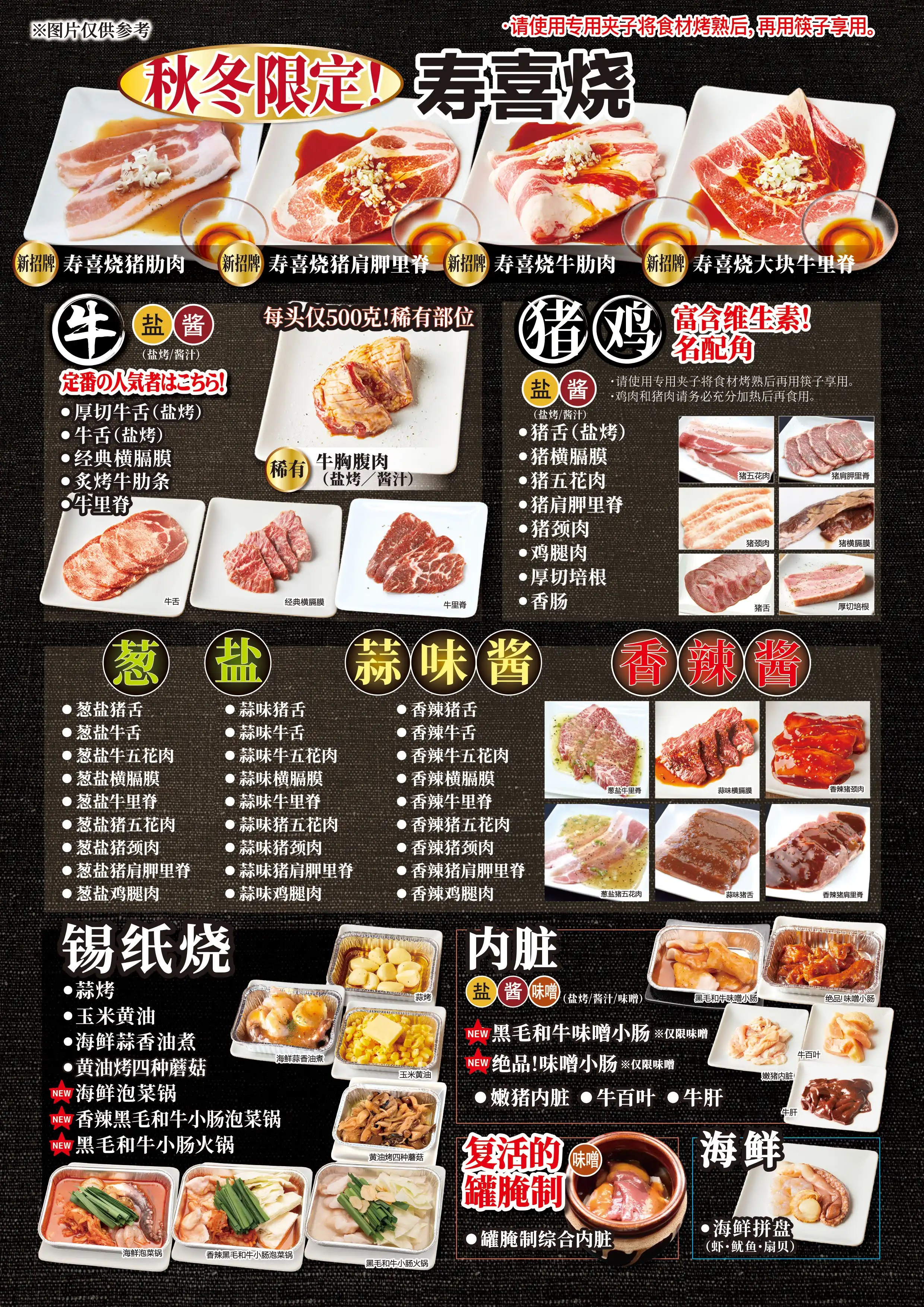 【当店限定コース】”焼肉食べ放題4,400円”と”アルコール飲み放題1,500円”がついて通常6,400円のところ5,500円でご提供!コーススタートと同時に黒毛和牛3種カルビ盛り合わせをサービスでご提供!(和牛ザブトン/和牛肩バラ/和牛上カルビ/和牛ブリスケ※うち3種)食べ放題メニューは臭みが一切ない黒毛和牛の味噌ホルモンや希少部位のブリスケットスカート、この時期おすすめのすき焼き風焼肉などがお楽しみいただけます。