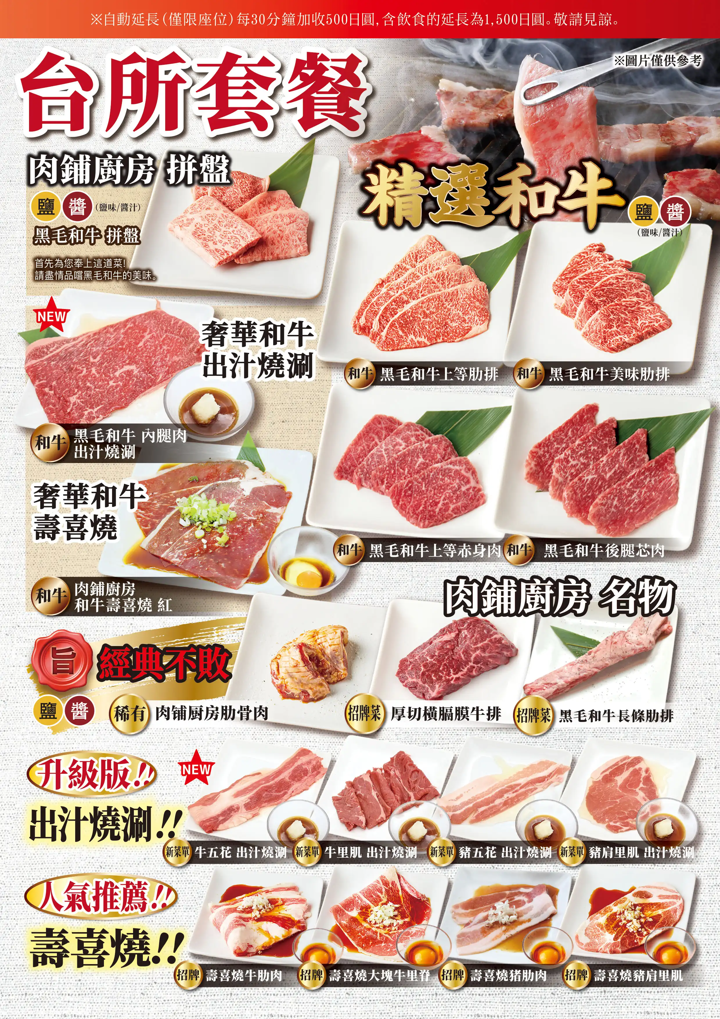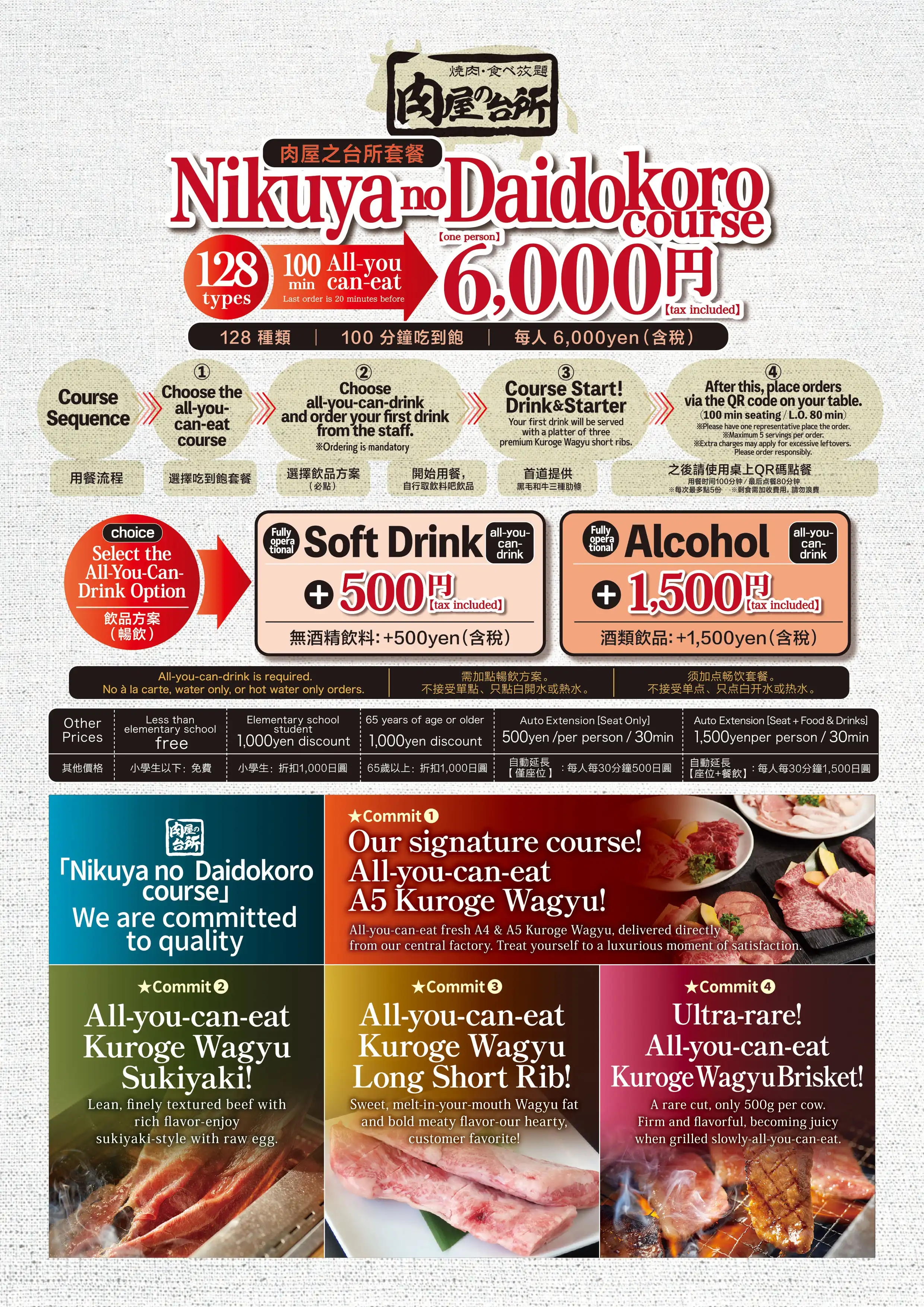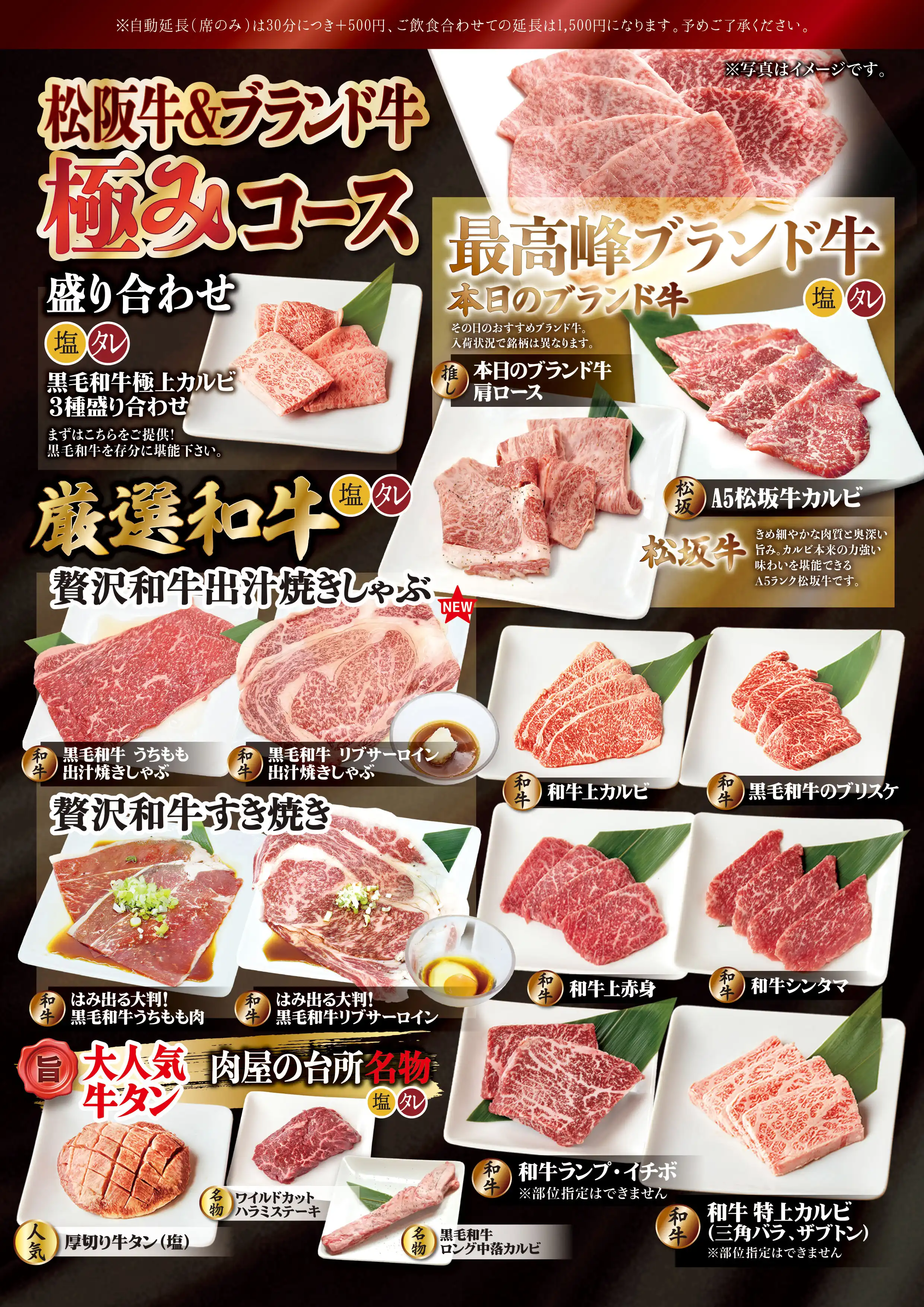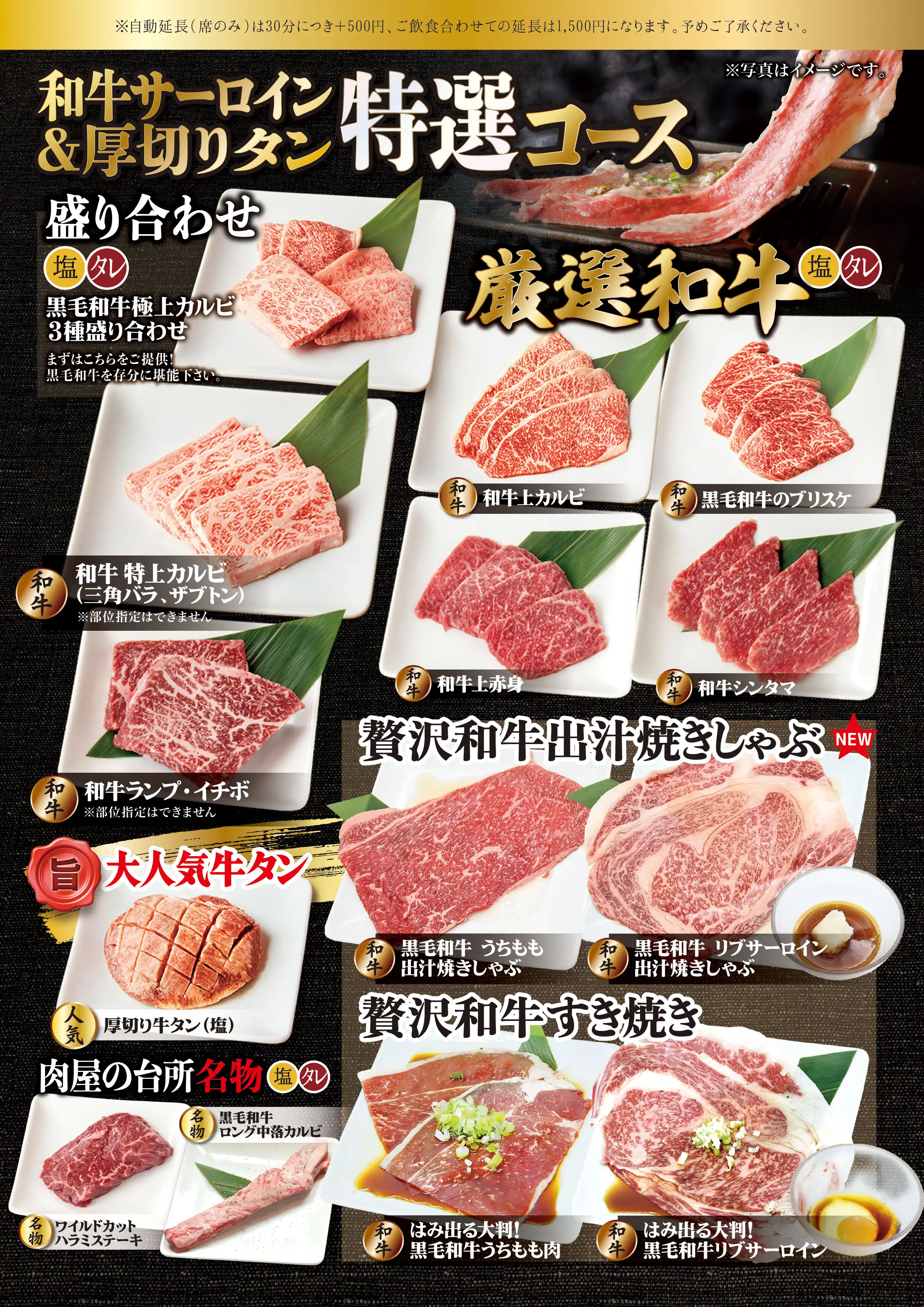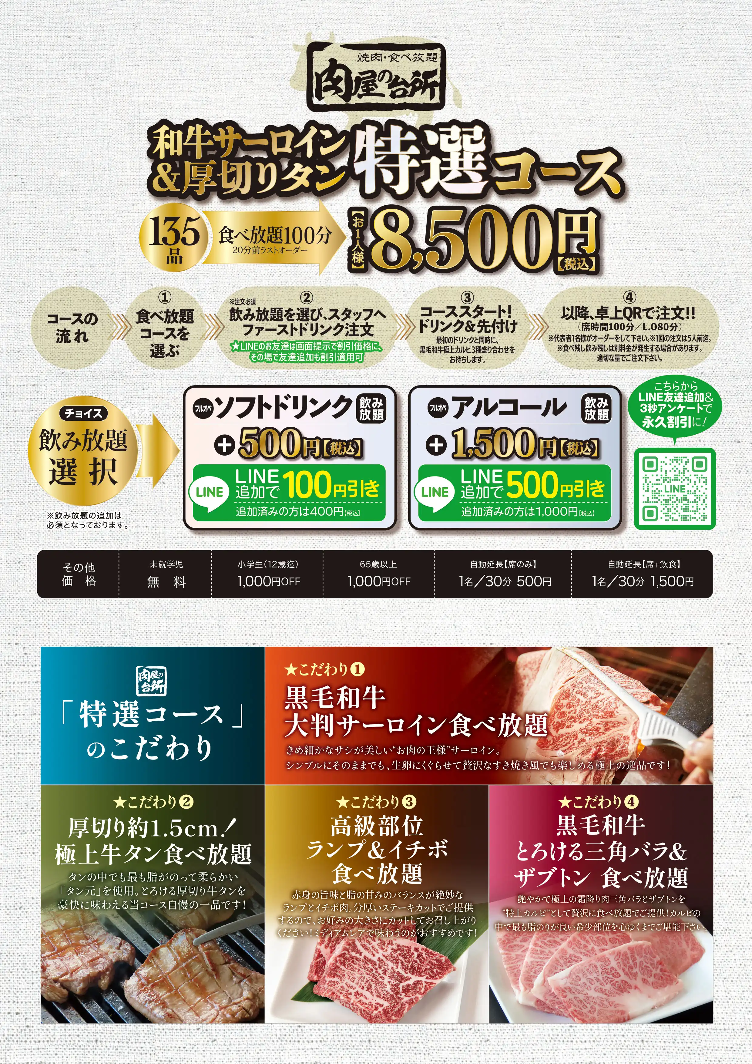 | コース内容 | 肉屋の台所 焼肉コース 肉屋の台所コース 肉屋の台所 特選コース |