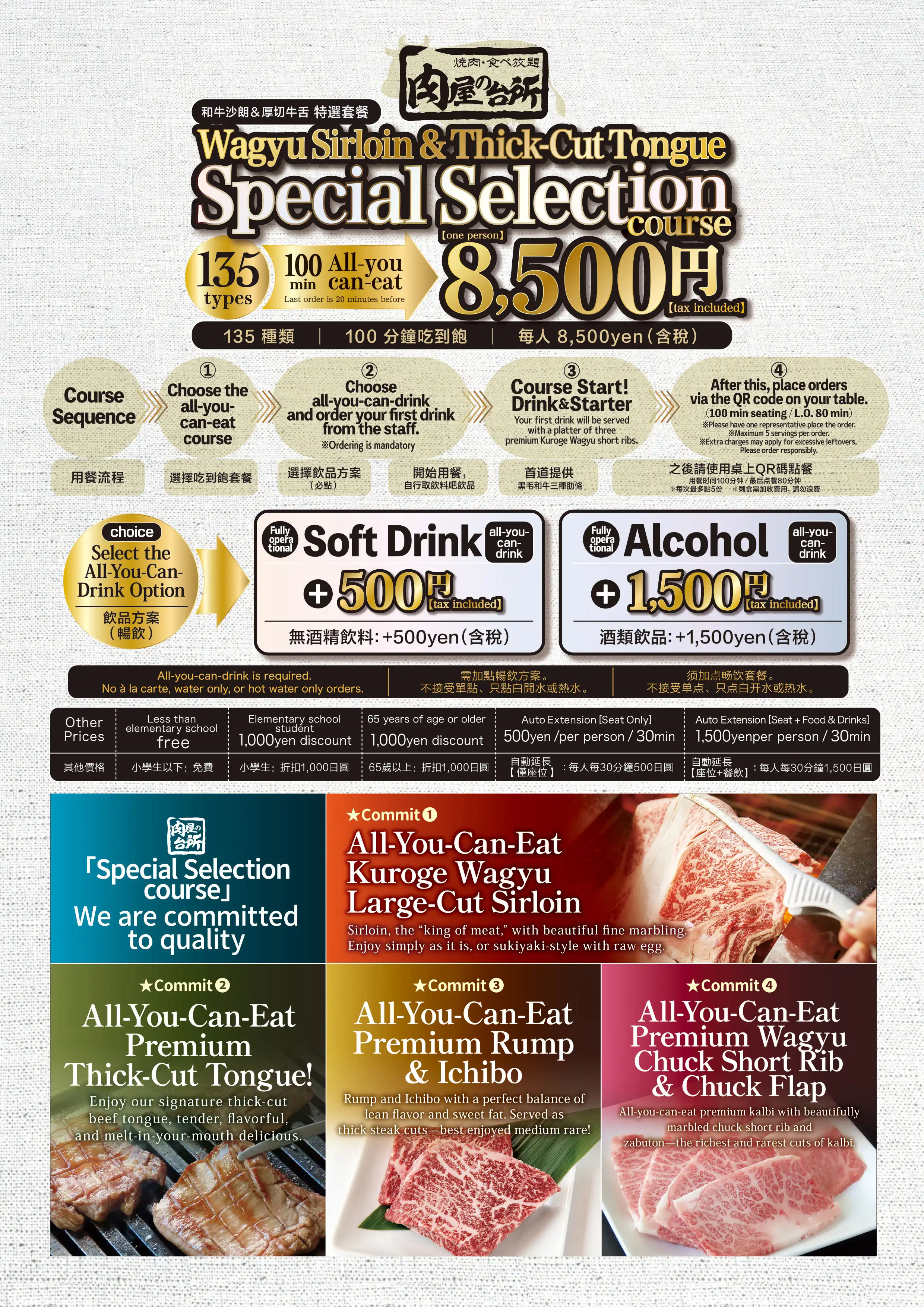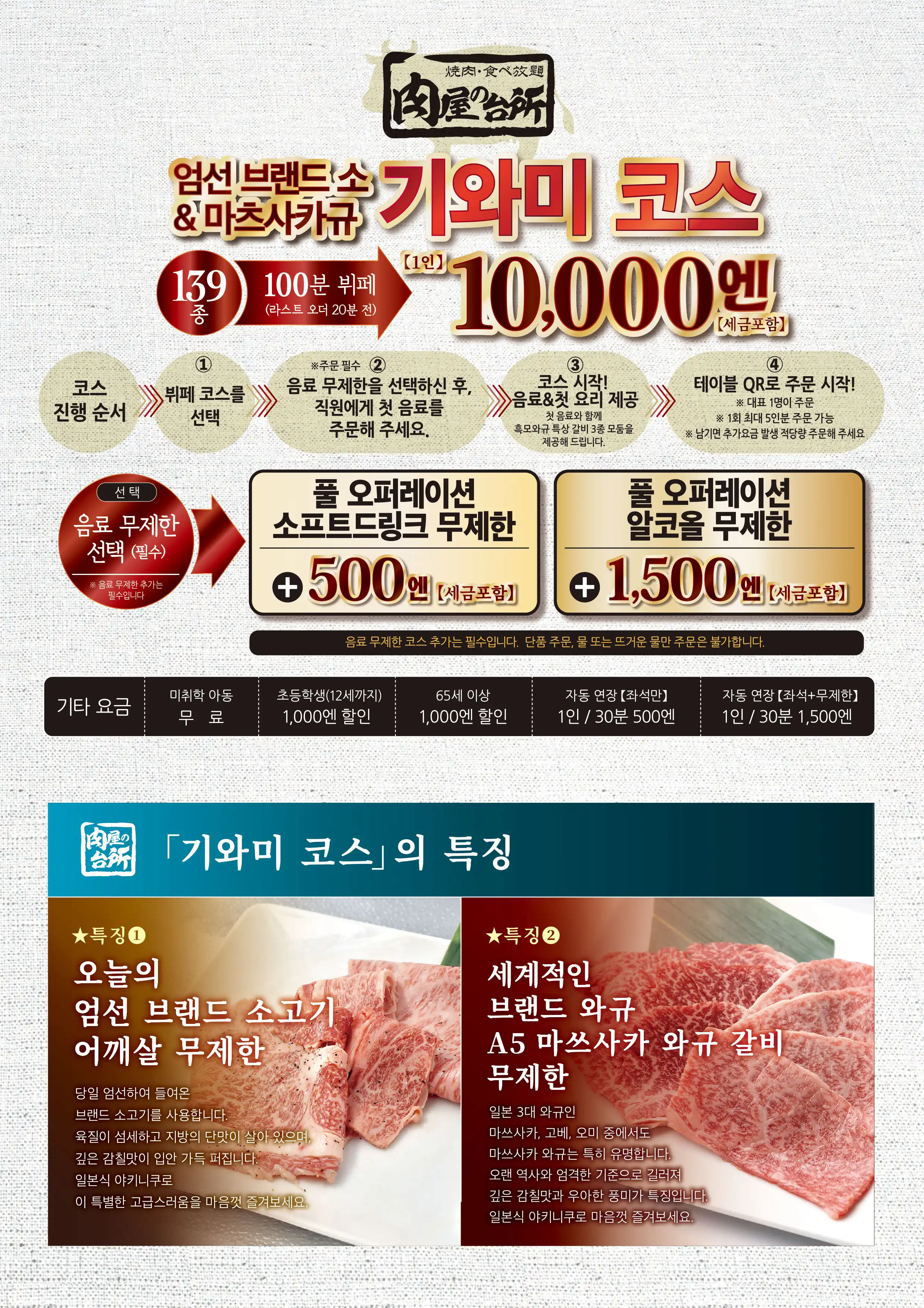 心ゆくまで上質な焼肉食べ放題をお召し上がりください。