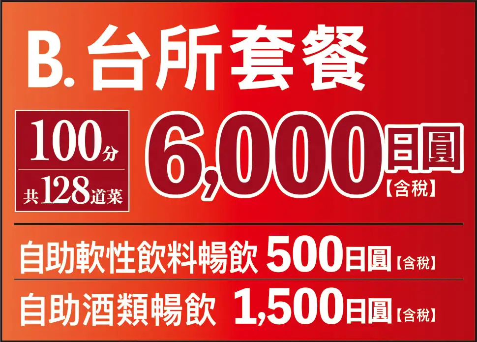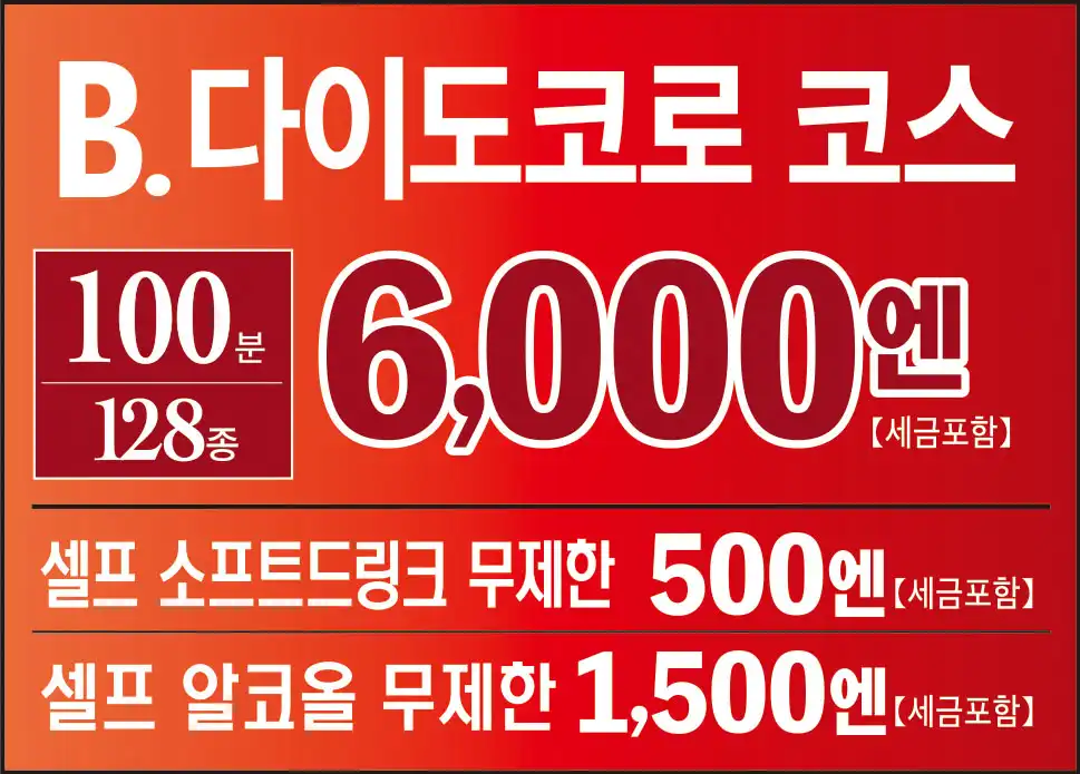 | コース内容 | <食べ放題MENU> 【 A5黒毛和牛 】 極上カルビ3種盛り合わせ (三角ばら/ザブトン/上カルビ/ブリスケ)うち三種 和牛ロング中落カルビ、和牛上カルビ、和牛ブリスケットスカート、和牛上赤身、和牛シンタマ、和牛うちもも肉 【1頭から500gの希少部位】 希少部位ブリスケットスカート 【すき焼き】 和牛サーロイン、和牛大判うちもも肉、牛カルビ、牛ロース、豚カルビ、豚肩ロース 【牛肉】 炙りバラカルビ、牛タン、ハラミ、ロース 【ホルモン】 黒毛和牛ぷりぷり味噌ホルモン(小腸)、壺漬けホルモンミックス、やわらか旨豚ホルモン 、ムキミノスライス、絶品!旨味噌マルチョウ、レバー 【豚・鶏】 (塩/タレ/ニンニクだれ/ねぎ塩だれ/旨辛ダレ) 豚タン、豚ハラミ、豚バラカルビ、豚肩ロース、トントロ、鶏もも、厚切りベーコン、ソーセージ、 【サイドメニュー】 手仕込み白菜生キムチ、カクテキ、キムチ盛り合わせ、オイキムチ、小松菜ナムル、もやしナムル、シーザーサラダ、肉屋の台所特製塩ごまだれサラダ、蒸し鶏ゴマダレサラダ、まき野菜、塩だれキャベツ、ポテトサラダ、韓国のり、おつまみうずら、チヂミ 【ホイル焼き】 にんにく焼き、4種のきのこのバター焼き、コーンバター、海鮮アヒージョ、ヤンニョム海鮮盛り 【〆・ご飯もの】 ビビンバ、ごはん、肉屋台所カレー、一口冷麺(梅味)、一口冷麺、コムタンスープ、 【肉屋のTKGシリーズ】 肉屋のTKG しょうゆ、肉屋のTKG塩、肉屋のTKGネギ油 【焼き野菜】 焼き野菜盛り合わせ 【海鮮焼き】 海鮮盛り合せ(エビ・イイダコ・ホタテ) 【デザート】 杏仁豆腐、フルーツポンチ 生チョコアイス★1人1つ (抹茶/バニラ/チョコ) |