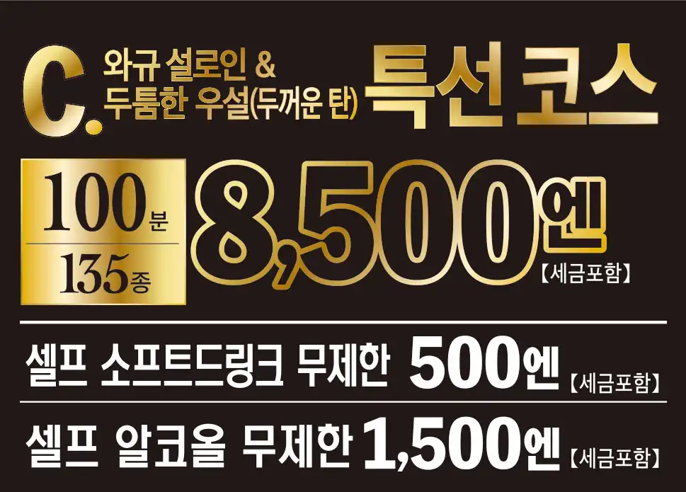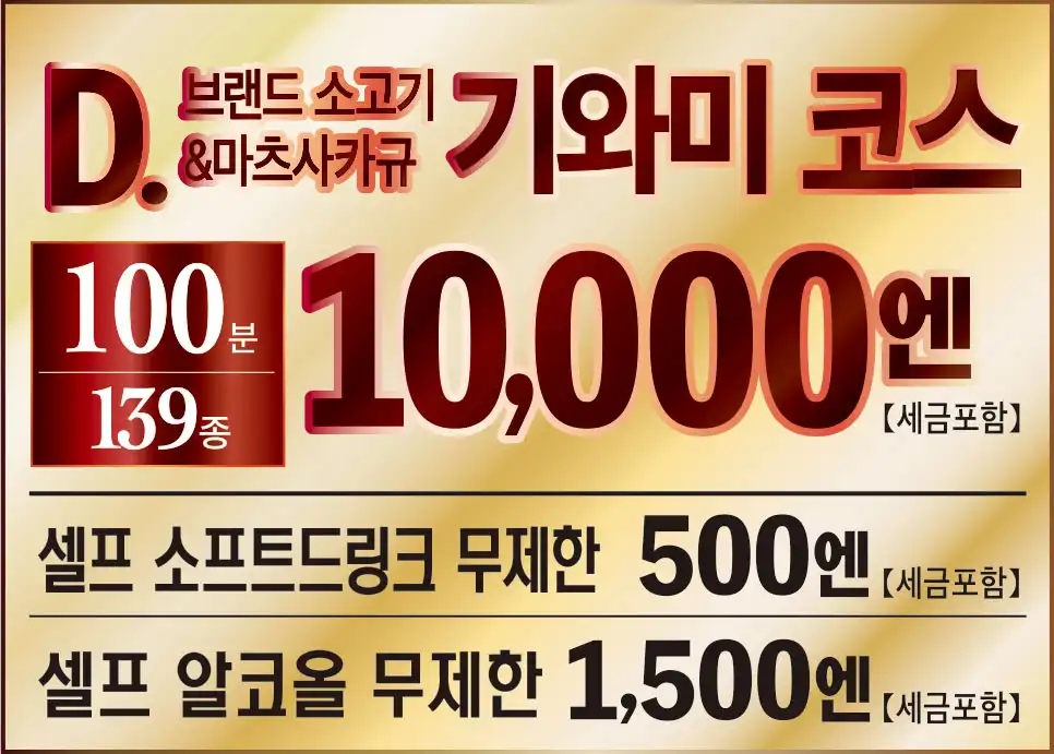 【当店限定コース】”焼肉食べ放題4,400円”と”アルコール飲み放題1,500円”がついて通常5,900円のところ5,000円でご提供!(生ビールは入っておりません)コーススタートと同時に黒毛和牛3種カルビ盛り合わせをサービスでご提供!(和牛ザブトン/和牛肩バラ/和牛上カルビ/和牛ブリスケ※うち3種)食べ放題メニューは臭みが一切ない黒毛和牛の味噌ホルモンや希少部位のブリスケットスカート、この時期おすすめのすき焼き風焼肉などがお楽しみいただけます!大切なお仲間とお酒を交わしながらお過ごしくださいませ!